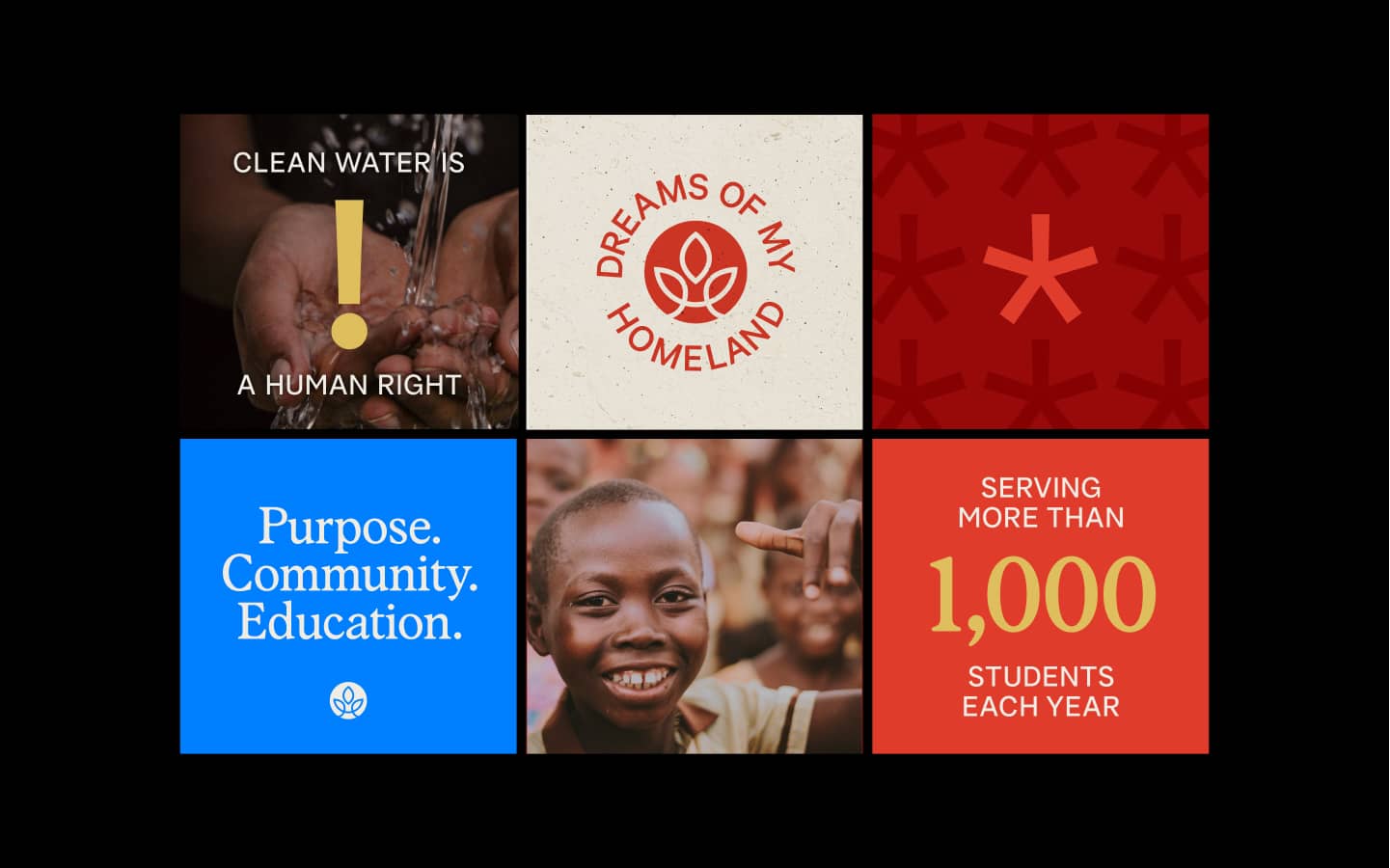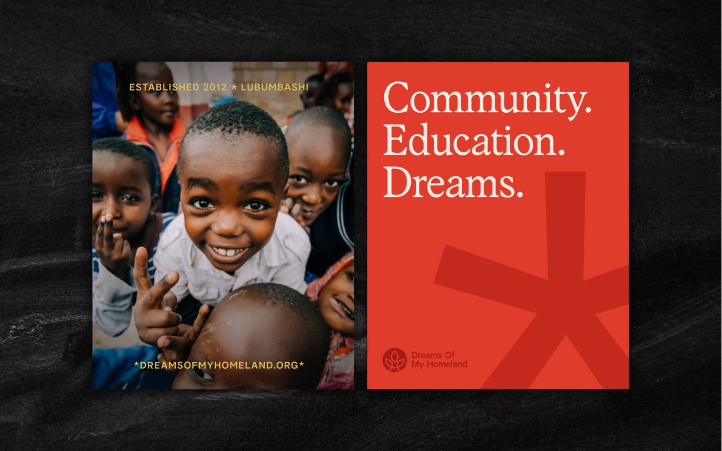 Dreams of My Homeland (DOMH) is a global nonprofit organization serving refugees in Lexington, KY. The founders of DOMH were forced by war to leave their homeland. DOMH works to provide quality education, clean water, and food resources to the Kinsevere community in the DRC. DOMH needed a strong identity design for their school of 550 students and educators.